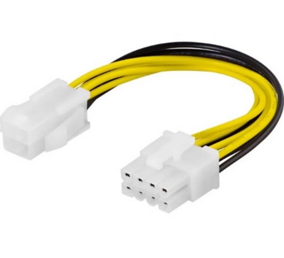 Joissakin virtalähteissä on vain 4-pinninen virtaliitin, joten tällä adapterilla liittimestä saadaan 8-pinninen.