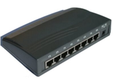 8-porttinen hallitsematon verkkokytkin, jolla voidaan laajentaa porttien määrää laitteille.
