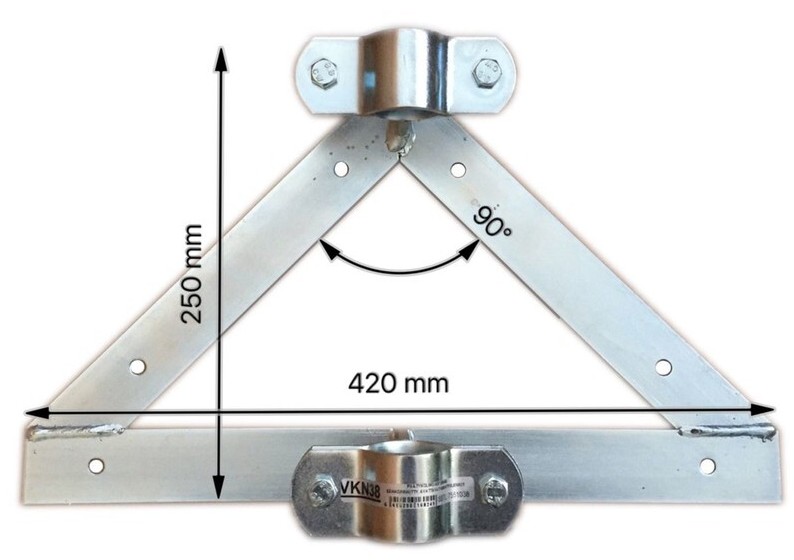 Päätykolmiokiinnike mastoputken tukevaan kiinnittämiseen.