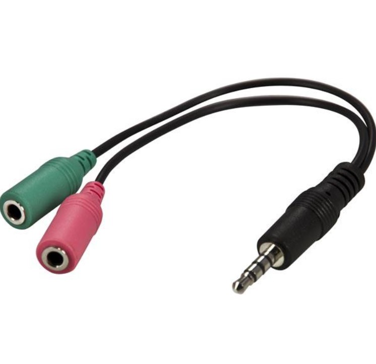 Kuulokeadapterikaapeli, jonka avulla voidaan liittää esim. puhelimeen tai tablettiin normaalit kuulokkeet joissa on erillinen 3,5mm ääniliitin kuulokkeille ja mikrofonille.