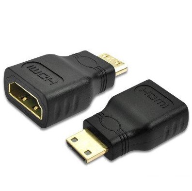 Mini HDMI uros – HDMI naaras -adapteri HDMI-signaalin viemiseen erikokoiseen HDMI-liittimeen.