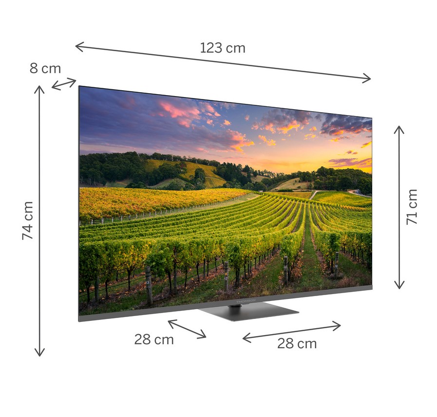 - Liitännät: 2x HDMI 2.1, 2x HDMI 2.0, 2x USB 2.0, USB 3.0, WiFi, Bluetooth, Ethernet RJ45, optinen äänilähtö, kuulokelähtö, antenniliitin, Chromecast mobiililaitteen peilaamiseen, CI+ -paikka moduulille