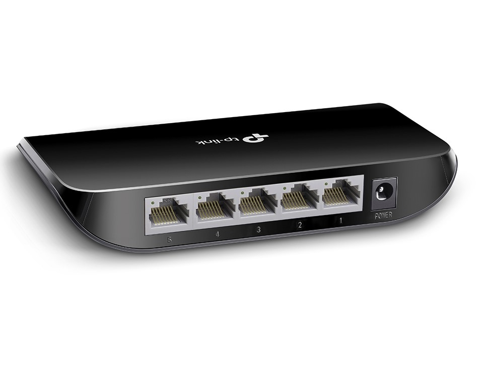 Hiljainen 5-porttinen hallitsematon verkkokytkin gigabitin porteilla.